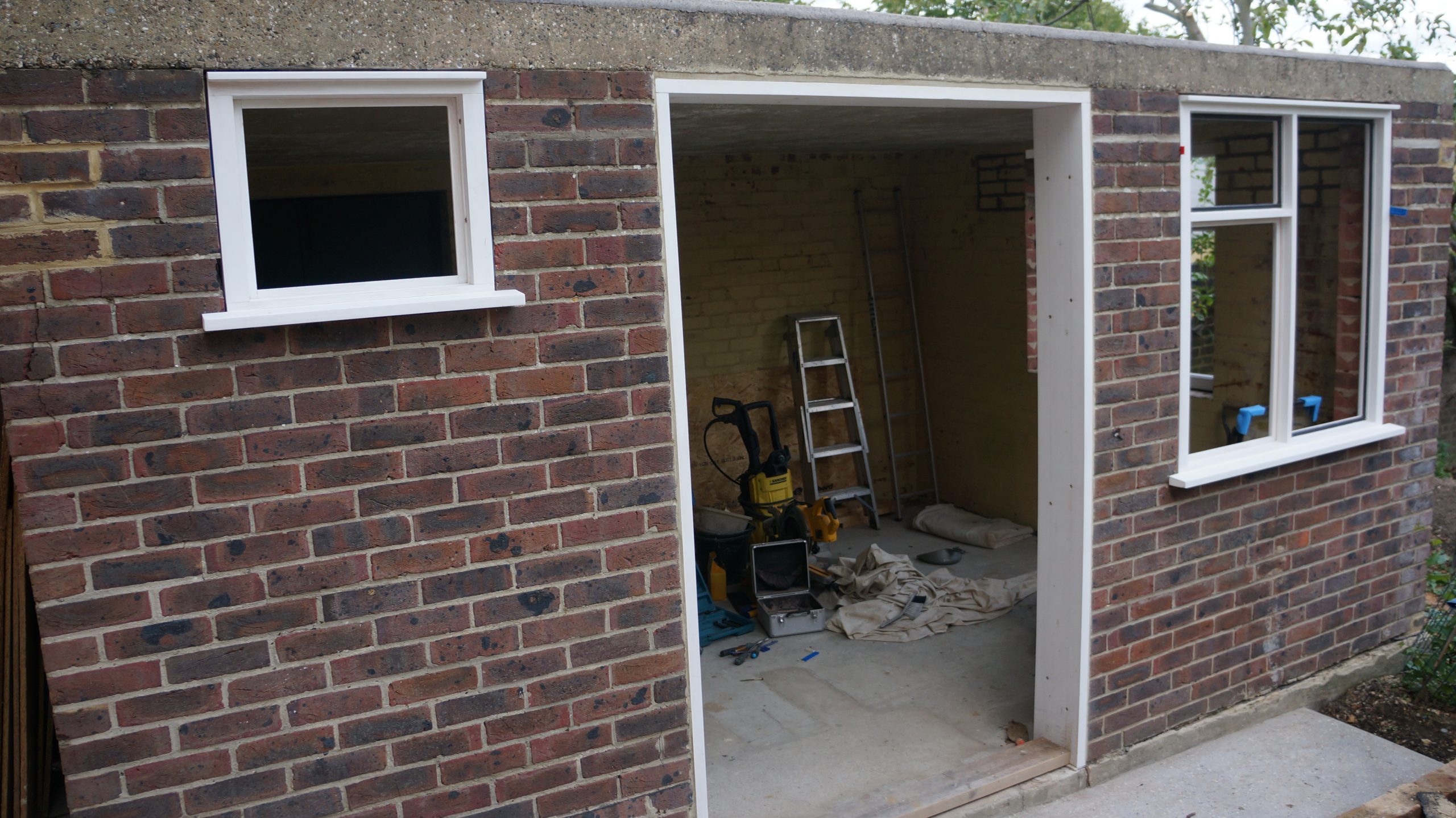 We designed 3 wooden windows and doors & carefully cut out the bricks to fit them. This was no mean task as the wall is 2 bricks thick and the mortar was harder than the brick themselves.